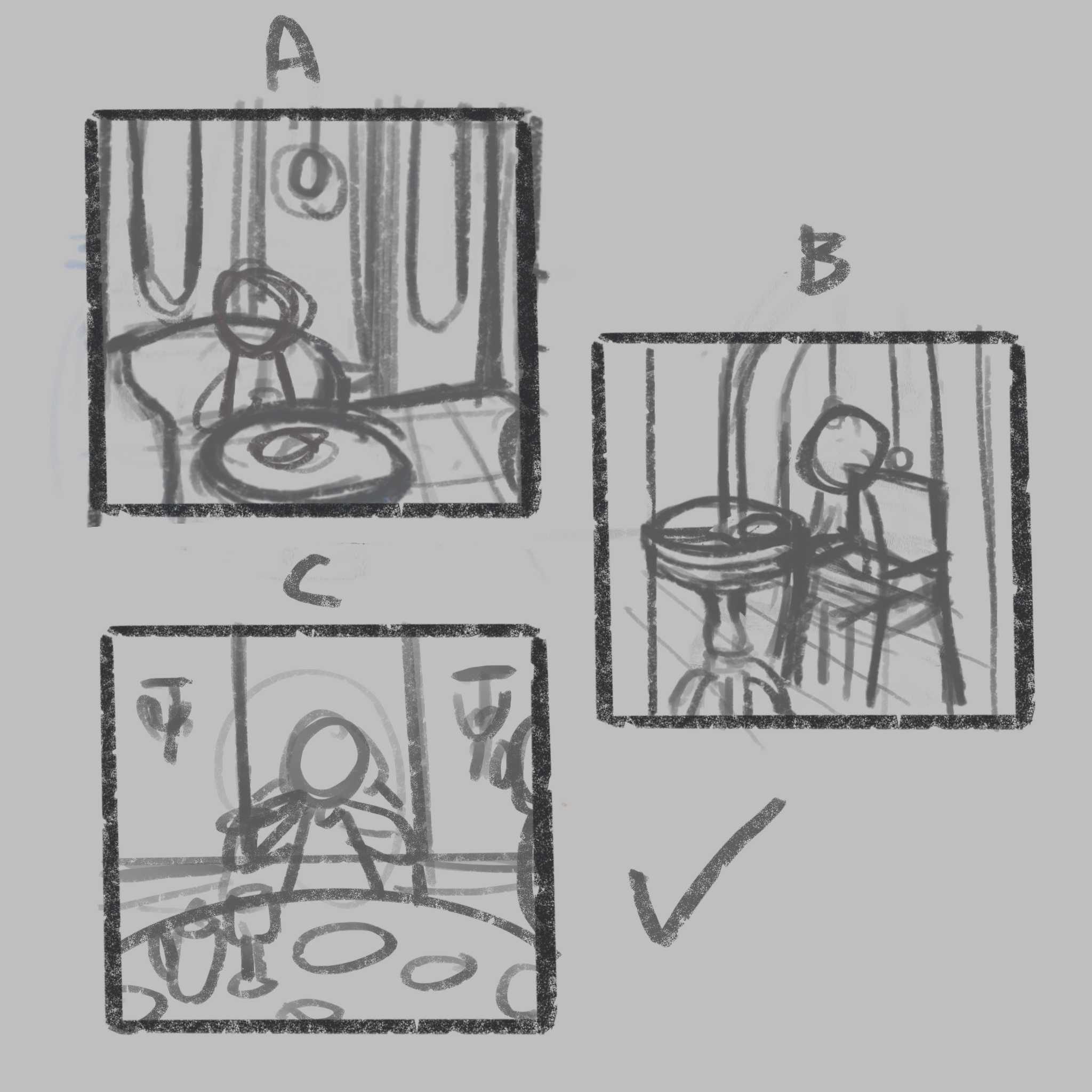 from the chosen thumbnail, i drew more details of the character and props, then i moved on to the outline, coloring, lighting and rendering!