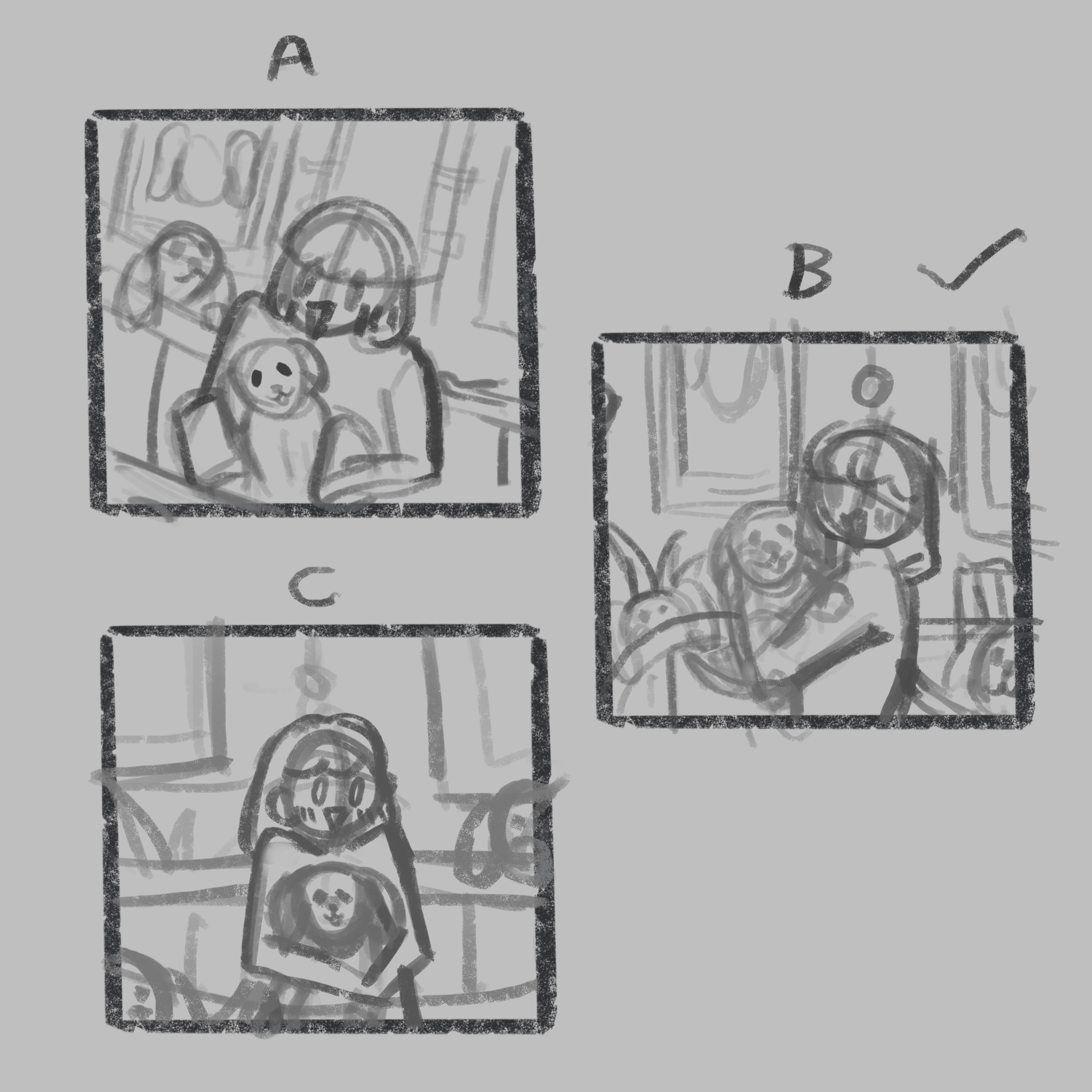 i wanted to illustrate myself doing makeup, the first step was to create 3 thumbnails. in the end, i decided to go with the first one (*°▽°*)